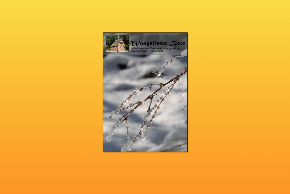 Wangelister Bote Wangelister Bote Dezember 2024 7 December 2024 / Comments Campaigns Published No Content Unpublished Campaigns Unpublished No Content Unpublished Submitted by truether on 7 December 2024 Dateianhang Wangelister Bote Dezember 2024 (8.86 MB)